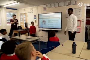 ????薩卡驚喜現(xiàn)身小學時期的母校,當時孩子們正在做關于自己偶像的演講。