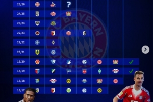 以下為拜仁近10個賽季在德國杯中的戰(zhàn)績: