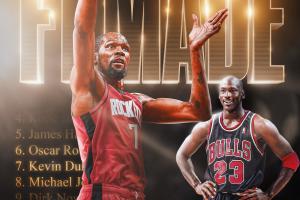本場比賽,杜蘭特迎來里程碑,他的生涯罰球命中數(shù)(7328個)超越喬丹(7327個),升至NBA歷史第七位。