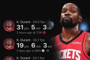據(jù)統(tǒng)計,杜蘭特火箭生涯4場比賽得分破百,隊史第二快,僅次于哈登(3場)。