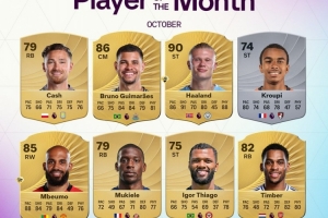 體育資訊10月30日訊 英超官方公布了10月最佳球員候選8人名單,哈蘭德領(lǐng)銜: