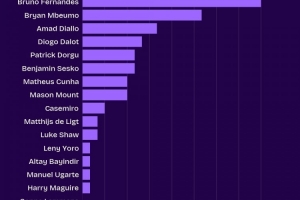 體育資訊10月31日訊 數(shù)據(jù)機(jī)構(gòu)squakwa統(tǒng)計(jì)了本賽季曼聯(lián)隊(duì)內(nèi)英超創(chuàng)造機(jī)會(huì)情況,B費(fèi)仍獨(dú)自領(lǐng)跑。