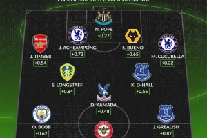 前鋒:奧斯卡-鮑勃(曼城,+0.62分)、伊戈?duì)?蒂亞戈(布倫特福德,+0.91分)、杰克-格拉利什(埃弗頓,+0.87分)