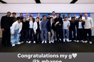 貝林厄姆也通過(guò)社媒曬出了皇馬全隊(duì)同手持金靴獎(jiǎng)杯姆巴佩的合影,并配文:“祝賀我的兄弟@姆巴佩”。