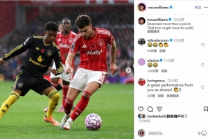 體育資訊11月2日訊 英超第10輪比賽,內(nèi)科-威廉姆斯踢滿全場(chǎng),幫助諾丁漢森林主場(chǎng)2-2戰(zhàn)平曼聯(lián)。