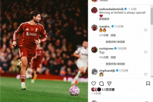 索博斯洛伊當(dāng)選利物浦隊內(nèi)最佳球員,他在社交媒體上慶祝勝利:“在安菲爾德取勝總是很特別?!?/p>