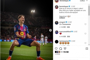 費爾明社媒曬出激情慶祝的照片,配文:“這就是前進的方向!非常高興能為這場漂亮的團隊勝利貢獻力量!繼續(xù)加油!”
