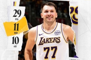 賽后湖人發(fā)布東契奇三雙數(shù)據(jù)海報(bào),并寫道:生涯第83次三雙。