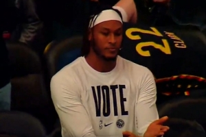 此役,雄鹿中鋒邁爾斯-特納重返步行者主場(chǎng),但遭到老東家球迷的漫天噓聲,對(duì)此,特納面對(duì)鏡頭做了一個(gè)合上書(shū)的動(dòng)作。