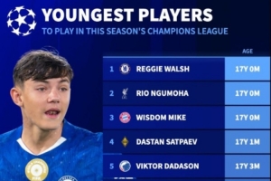 以下為歐冠各隊有望出戰(zhàn)比賽最年輕球員排行:
