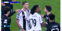 體育資訊11月05日訊 歐冠第4輪尤文vs葡體第64分鐘,阿勞霍對麥肯尼犯規(guī)吃到一張黃牌,隨后弗拉霍維奇與對手球員發(fā)生口頭爭執(zhí)。
