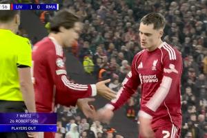 體育資訊11月05日訊 歐冠第4輪利物浦vs皇馬第89分鐘,利物浦再次做出2個換人調(diào)整,維爾茨、羅伯遜被換下,凱爾凱茲、基耶薩替補登場。