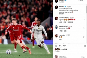 此役維爾茨為利物浦首發(fā)出戰(zhàn),送出5記關(guān)鍵傳球,賽后他在社交媒體上曬出比賽照片,并寫(xiě)道:“精彩的表現(xiàn),感謝你們?cè)诎卜茽柕聽(tīng)I(yíng)造的非凡氛圍!”