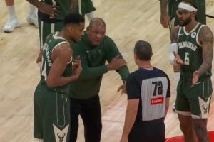 GIF-三分鐘后,字母哥被撞,里弗斯高攤雙手