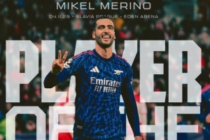 本場(chǎng)比賽梅里諾出任中鋒梅開二度,賽后他也當(dāng)選阿森納官方評(píng)選出的本場(chǎng)比賽隊(duì)內(nèi)最佳球員。