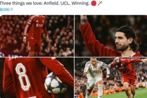 索博斯洛伊?xí)癯鲑悎?chǎng)照片,并配文寫(xiě)道:“我們熱愛(ài)的三件事:安菲爾德、歐冠、勝利?!?/p>