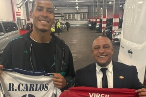 體育資訊11月5日訊 在利物浦結(jié)束與皇馬的歐冠較量后,紅軍隊(duì)長(zhǎng)維范戴克在社交媒體上曬出與皇馬傳奇左后衛(wèi)羅伯托-卡洛斯的合影,兩人并互換了球衣。