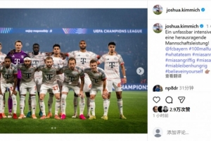 本場(chǎng)比賽也是基米希生涯第100次在歐冠出場(chǎng),他在個(gè)人社媒曬出全隊(duì)合照,配文寫道:“在這一場(chǎng)緊張激烈的比賽中,球隊(duì)表現(xiàn)完美,達(dá)成歐冠百場(chǎng)里程碑!”