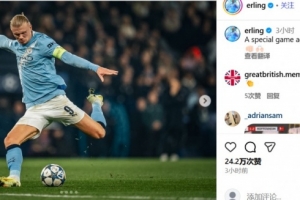 在社交媒體上,哈蘭德曬出了自己的賽場照,并寫道:一場面對特別俱樂部的特別比賽。