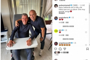 伊涅斯塔社媒曬出與溫蘇埃的合照,配文:“暢談生活與足球的時(shí)光總是如此美妙,你真的很了不起,朋友?!?/p>