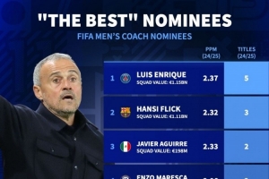 體育資訊11月7日訊 FIFA公布年度最佳男足教練候選名單,德國轉(zhuǎn)會市場列出了入圍者上賽季的成績。