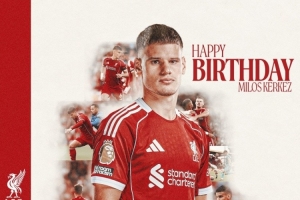 利物浦官方社媒曬出為凱爾凱茲制作的生日海報,配文:“祝你度過美好的一天,米洛斯。”