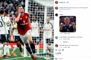 體育資訊11月9日訊 曼聯(lián)在本輪英超焦點(diǎn)戰(zhàn)2-2絕平熱刺,德里赫特頭槌破門。