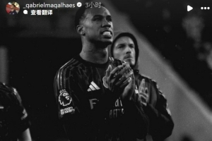 本場比賽阿森納遭遇對手補時絕平,10連勝終結(jié)。加布里埃爾賽后在社媒曬照鼓勵球隊:“槍迷們我們很快再見,我們會以更強姿態(tài)回歸,感謝大家的支持!”