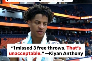 體育資訊11月10日訊 在昨天的NCAA常規(guī)賽,雪城大學以83-43狂勝德拉瓦州立大學,取得開季兩連勝??仿 ぐ矕|尼之子基揚·安東尼迎來大學生涯第一次首發(fā),他11投8中,三分4中2、罰球4中1,砍下19分3籃板4助攻1搶斷,沒有失誤。