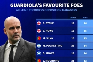體育資訊11月10日訊 曼城在本輪英超焦點戰(zhàn)3-0完勝利物浦,瓜帥也取得了執(zhí)教生涯對陣斯洛特的首勝。《轉(zhuǎn)會市場》也列出了瓜帥執(zhí)教生涯對陣教練的勝場最多榜。