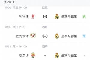 體育資訊11月10日訊 西甲第12輪,皇馬0-0巴列卡諾。