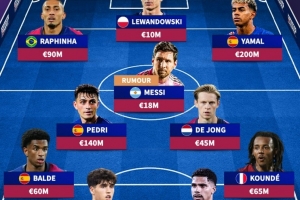 前鋒:拉菲尼亞、萊萬(wàn)、亞馬爾