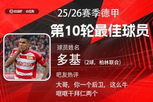 第十輪評選結(jié)果結(jié)出爐,柏林聯(lián)合中衛(wèi)多基梅開二度,幫助球隊(duì)2-2戰(zhàn)平拜仁,終結(jié)后者開局16連勝紀(jì)錄,當(dāng)選【體育資訊X小紅書德甲第10輪最佳球員】!
