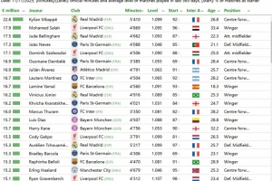 體育資訊11月12日訊 CIES足球天文臺發(fā)布了最新報(bào)告,公布了全球100名球員應(yīng)獲得的最高年薪。這一統(tǒng)計(jì)模型考慮了過去一年中的比賽時(shí)間、比賽水平以及首發(fā)比例等因素,還包括球員的主要位置。在這份報(bào)告中,姆巴佩以應(yīng)得2280萬歐元(僅固定部分)年薪位居榜首。