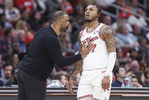 “從我執(zhí)教火箭以來,球隊的陣容深度一直不錯,惠特摩爾有點被這種競爭格局埋沒了,而且,我們在攻防兩端都對他提出了需要改進的具體要求,他在這些方面的表現時好時壞。但很高興他現在得到了機會,希望他能好好把握?!睘醵瓤ㄕf道。