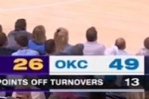 截至發(fā)稿,雷霆領(lǐng)先湖人23分,其中利用失誤得分高達13分,而湖人則掛零。