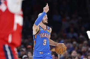 上半場,面對舊主的雷霆球員卡魯索表現(xiàn)出色,場上依舊是積極主動,攻防兩端都有不小貢獻,在12分鐘的時間里,投籃7中4,三分球3中2,拿到10分4籃板2助攻2搶斷的數(shù)據(jù),正負值+16。