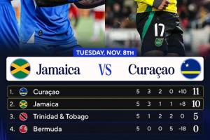 體育資訊11月14日訊 北美預(yù)選第三階段第5輪, 庫拉索客場7-0狂勝百慕大群島,牙買加客場1-1遭特立尼達和多巴哥絕平。