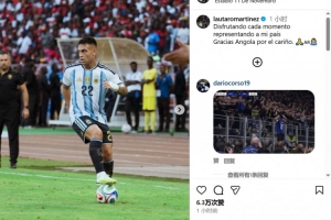 勞塔羅曬出在比賽中的照片,并配文寫道:“代表祖國出戰(zhàn)的每一刻都讓我無比享受,感謝安哥拉球迷的愛。”