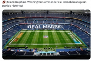 皇馬官方社媒曬出伯納烏球場(chǎng)準(zhǔn)備就緒的照片,配文:“邁阿密海豚vs華盛頓指揮官,伯納烏球場(chǎng)將迎來一場(chǎng)歷史性的比賽?!?/p>