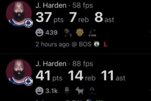 此役快船球星哈登出場37分鐘22投9中,三分11中5、罰球15中14空砍全場最高37分外加7板8助1斷,正負值-8。