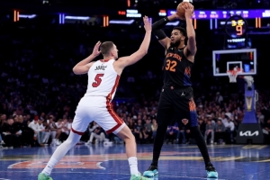 尼克斯新賽季至今8勝4負,場均得分122.1分,場均失115.3分。上一場比賽,尼克斯主場140-132戰(zhàn)勝熱火,在布倫森缺席的情況下,阿努諾比首節(jié)就因為腿筋拉傷下場,替補狂砍75分是球隊獲勝最大的功臣。唐斯39分11籃板4助攻,沙梅特36分2籃板3助攻,約什·哈特12分12籃板10助攻,克拉克森24分5籃板3助攻,布里奇斯15分5籃板5助攻7搶斷。本賽季尼克斯僅出戰(zhàn)了3個客場,球隊全部輸球。對陣熱火,內(nèi)線依然是尼克斯的優(yōu)勢所在,籃板球的爭搶、唐斯能否繼續(xù)暴走都可能影響到比賽勝負的走向。本場阿努諾比和布倫森缺席,麥克布萊德出戰(zhàn)成疑。