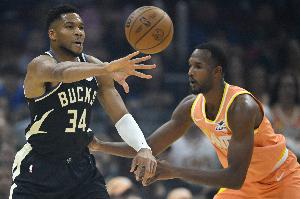 本場比賽,字母因傷提前離場。離場前他出戰(zhàn)13分鐘,10中6,罰球3中2拿到14分5籃板4助攻1搶斷,出現(xiàn)4次失誤。