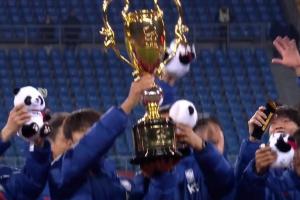 體育資訊11月18日訊 熊貓杯頒獎典禮,2勝1負(fù)的韓國隊捧起冠軍獎杯,中國隊1勝1平1負(fù)收獲亞軍銀盤。