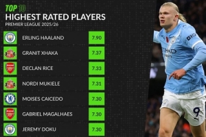體育資訊11月19日訊 截至目前本賽季英超進(jìn)行了11輪比賽,WhoScored列球員評分榜,哈蘭德7.90居首,扎卡7.37第二。
