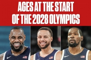 如果屆時(shí)庫(kù)里、詹姆斯、甚至是杜蘭特參加洛杉磯奧運(yùn)會(huì),他們?nèi)说哪挲g將分別是43歲、40歲和39歲。