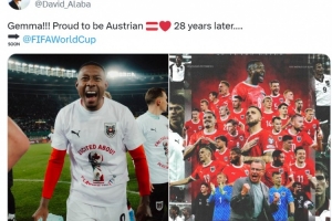 奧地利球員阿拉巴也在社媒曬出慶祝照片以及球隊(duì)晉級(jí)海報(bào),配文寫道:“身為奧地利人我感到驕傲,時(shí)隔28年重回世界杯!”