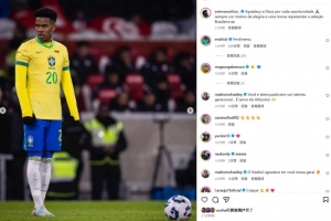 埃斯特旺也在社媒曬出本場照片,配文寫道:“為每一次機(jī)會感謝上帝,能夠代表巴西國家隊出戰(zhàn)一直是一份榮譽(yù)!”