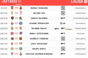 體育資訊11月19日訊 西甲第17輪各場(chǎng)開(kāi)球時(shí)間公布,12月21日4點(diǎn)皇馬vs塞維利亞,23:15比利亞雷亞爾vs巴薩。