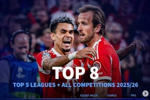 體育資訊11月21日訊 五大聯(lián)賽即將重燃戰(zhàn)火,《轉(zhuǎn)會(huì)市場》統(tǒng)計(jì)了本賽季至今五大聯(lián)賽球隊(duì)的各項(xiàng)賽事場均拿分情況,即將在歐冠正面對決的拜仁和阿森納分列前二。